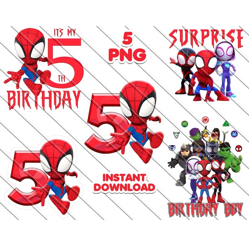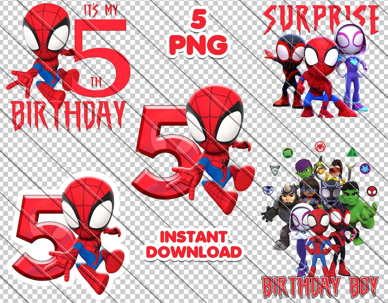 5th Birthday - Birthday Boy Png - Spider-man Birthday - Spidey and his Amazing Friends PNG Images